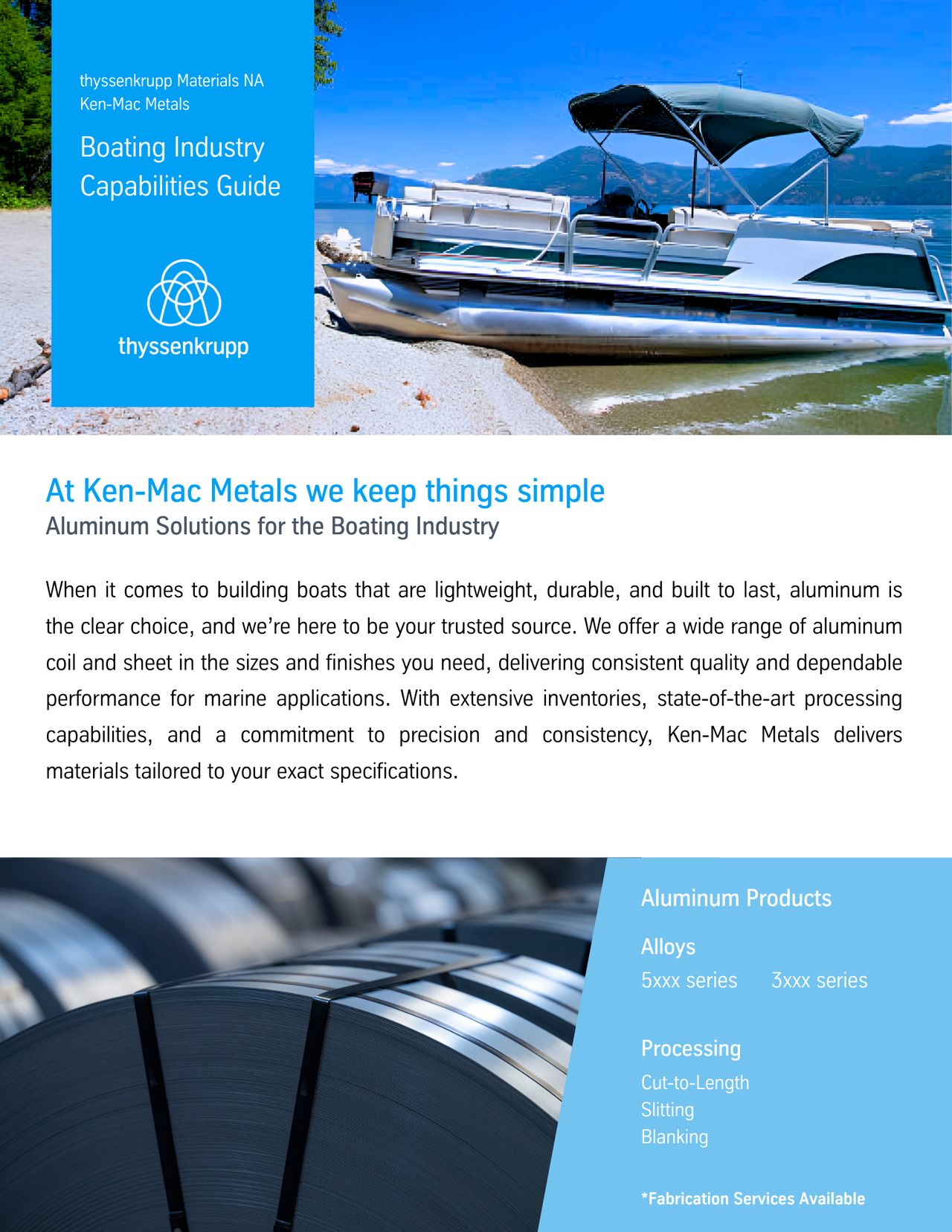 When it comes to building boats that are strong, lightweight, and made to withstand harsh marine conditions, aluminum is the clear choice, and having the right supplier makes all the difference. At Ken-Mac Metals, we offer a broad selection of aluminum coil and sheet in the sizes, gauges, and finishes required for today’s marine manufacturing needs.