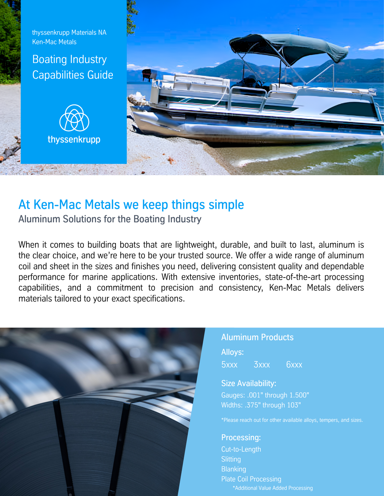 When it comes to building boats that are strong, lightweight, and made to withstand harsh marine conditions, aluminum is the clear choice, and having the right supplier makes all the difference. At Ken-Mac Metals, we offer a broad selection of aluminum coil and sheet in the sizes, gauges, and finishes required for today’s marine manufacturing needs.