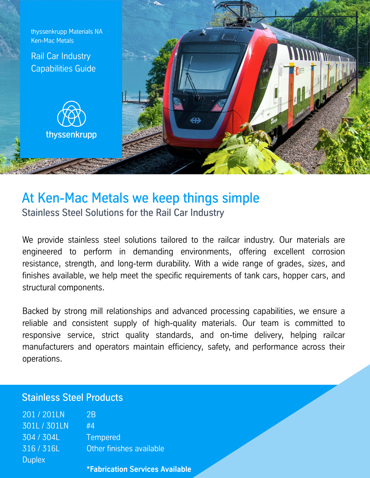 Through established mill partnerships and advanced processing capabilities, we provide a steady, dependable source of high-quality materials. Our focus on responsive support, rigorous quality standards, and reliable delivery helps railcar manufacturers and operators maintain safety, efficiency, and consistent performance across their operations.